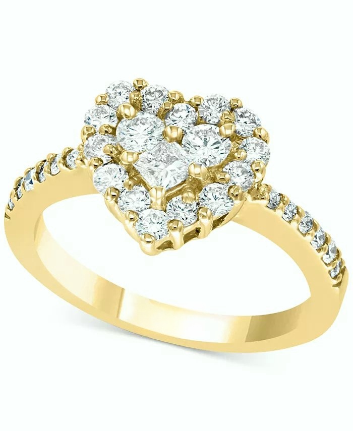 A special token of your affection. glittering heart-shaped diamond ring (9/10 ct. t.w.) is crafted in 14k white gold ,14k yellow gold or 14k rose gold for ultimate polish and shine.